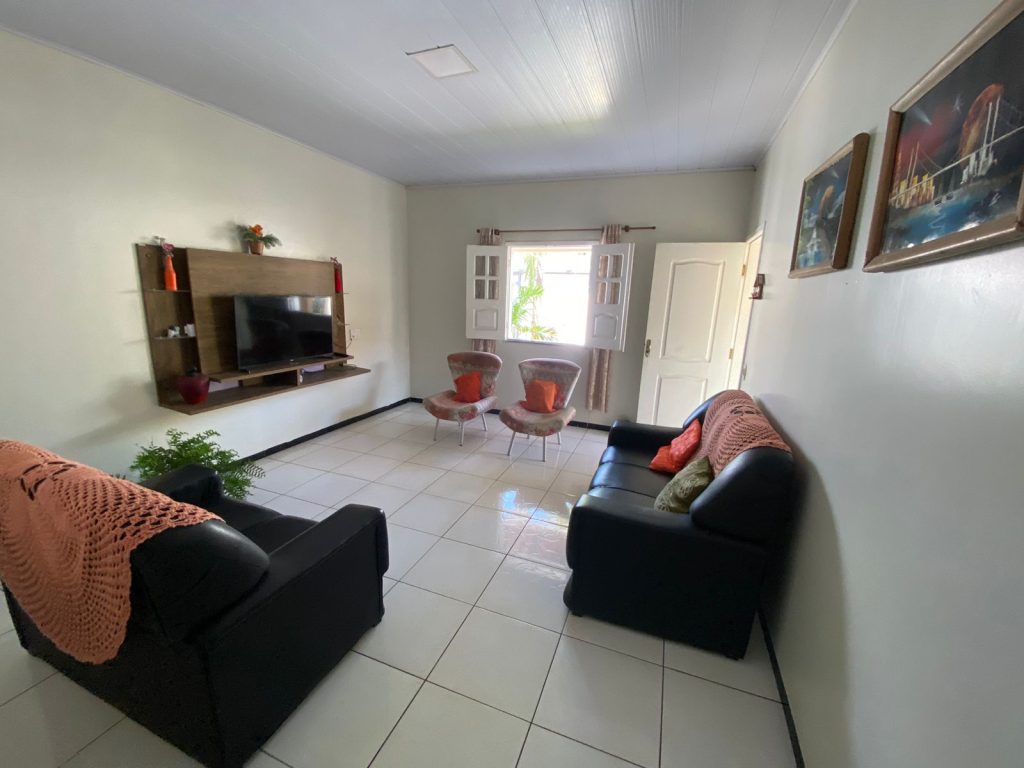 A casa acomoda confortavelmente até 08 pessoas, ideal para famílias ou grupos de amigos.